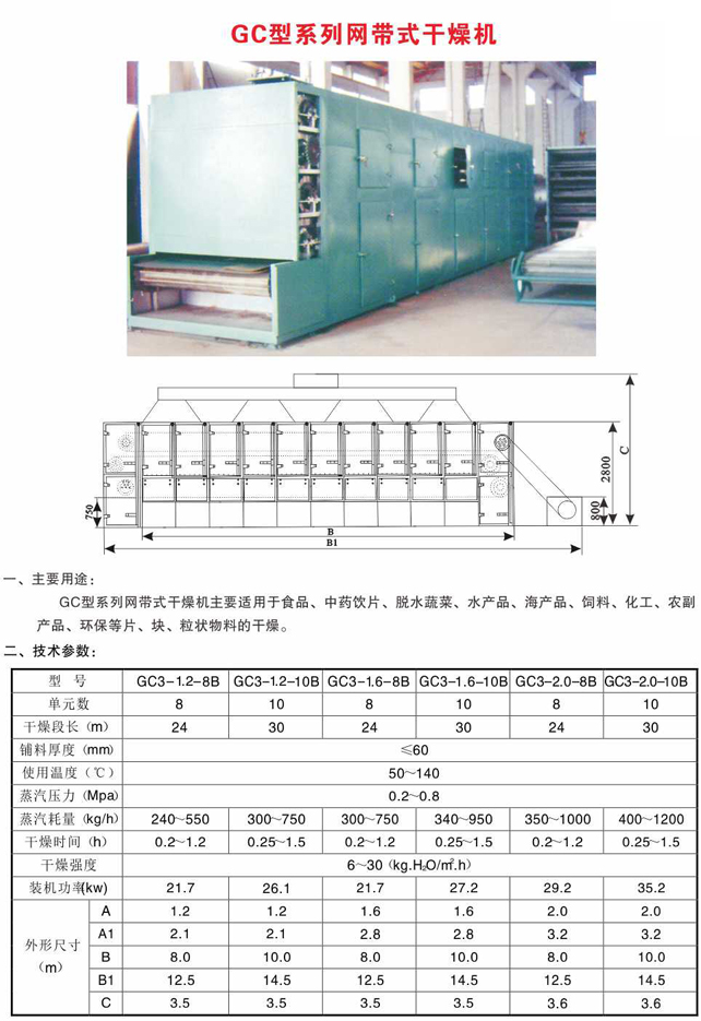 GC型系列網(wǎng)帶式干燥機(jī)